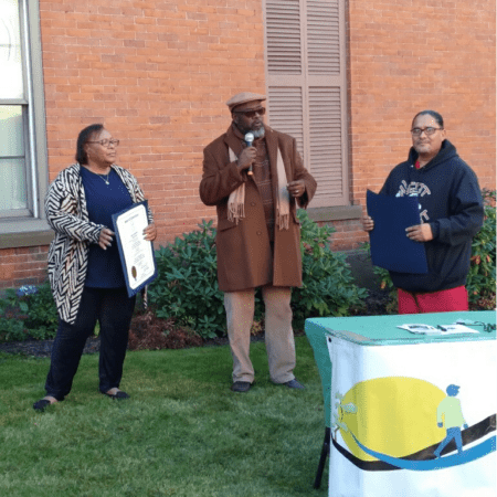 Thanks to donations from Verano, a company that owns dispensaries across the country, including Zen Leaf in Norwich, Lujan and Smith were able to receive reimbursement for the fees charged by the Pardon Team. They also received proclamations from the State of Connecticut, presented to them by state Sen. Cathy Osten, with state Rep. Kevin Ryan joining. Rev. Benjamin Green of Evans A.M.E. Zion Church also gave a prayer.